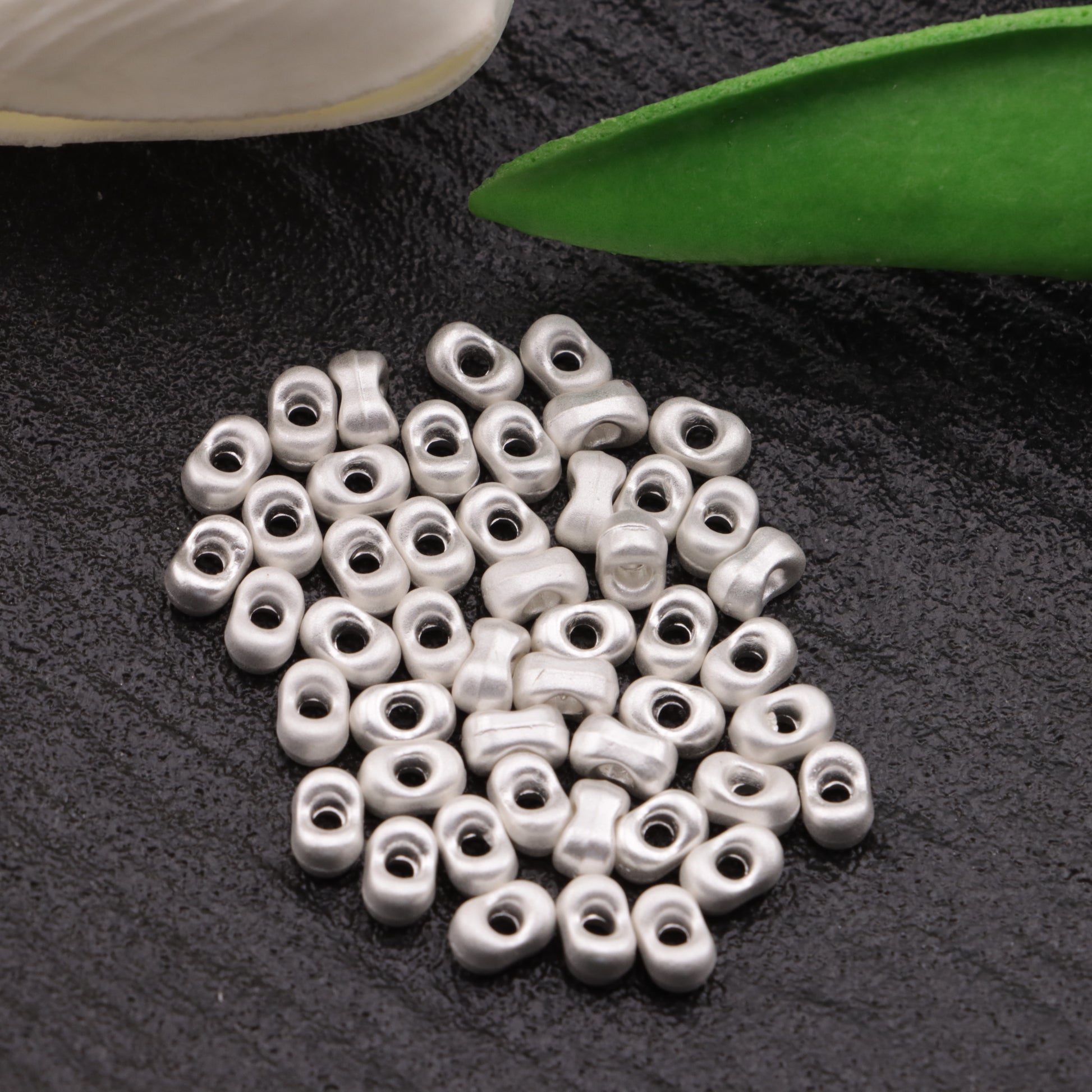 FS3764- 4×6mm Electroplated Silver Metal Peanut Beads