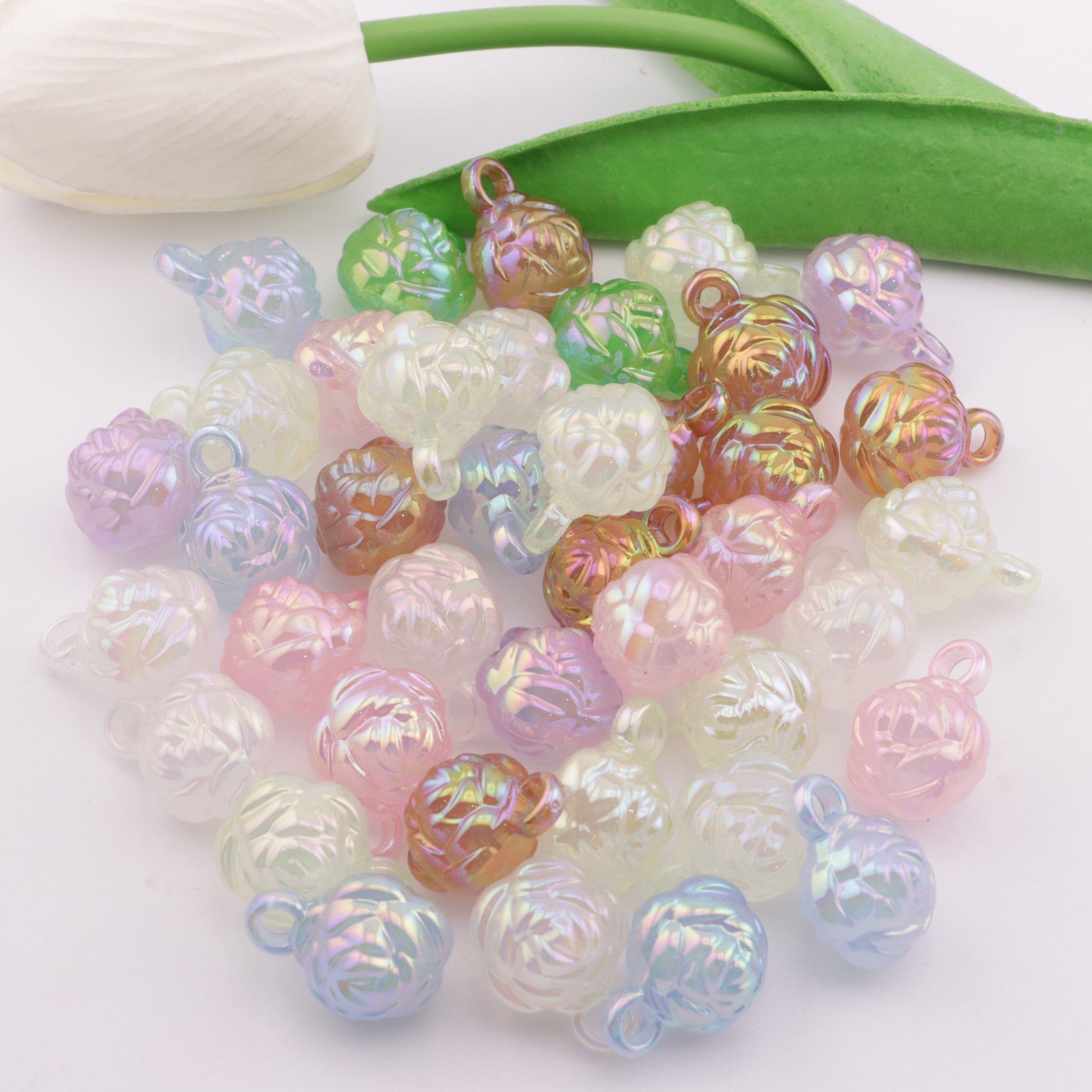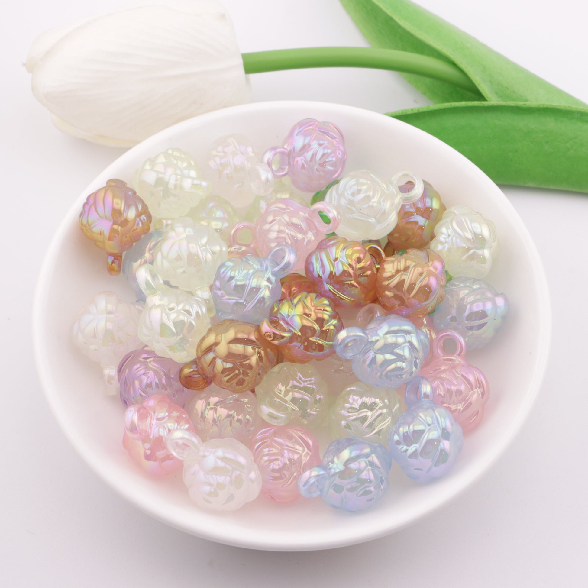 FS3621- UV Rose Beads Charms Double-Sided Rose Car Hanging Beads