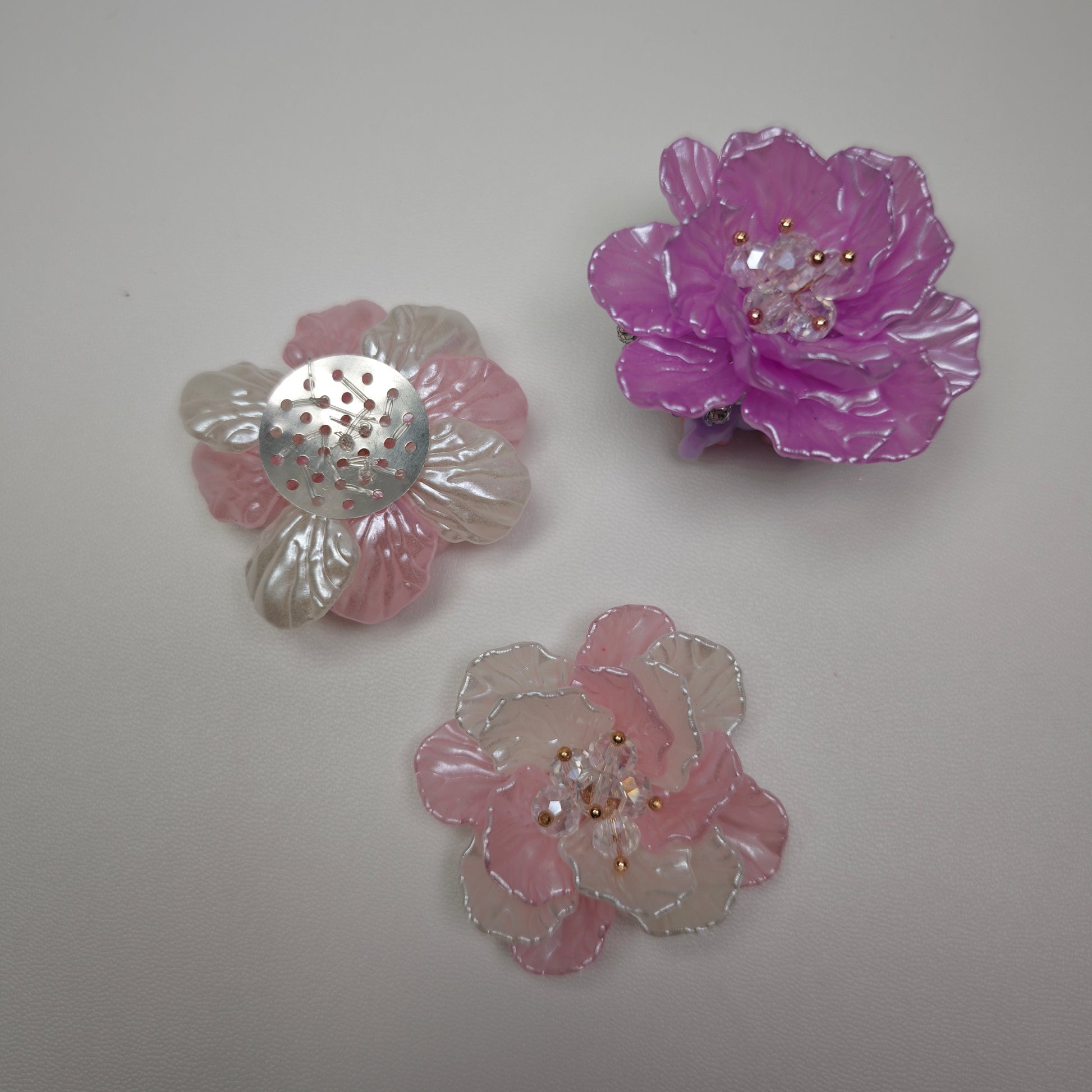 [KM6883]- 47mm 진주색 2겹 크리스탈 꽃 참
